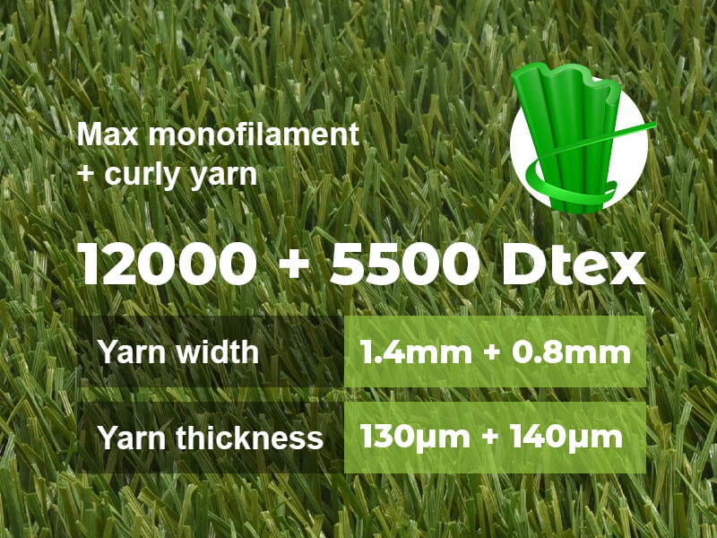 Max EX2 combina las suaves y resistentes fibras Max —monofilamentos tridimensionales— con hilos rizados texturizados para ofrecer una excepcional estabilidad y mantenimiento de la verticalidad, brindando una sensación auténtica de césped natural con un rendimiento de primera categoría. El Max EX2 50, un verdadero sistema ‘One Turf’ certificado por la FIFA, FIH y World Rugby, es ideal para canchas multideportivas.